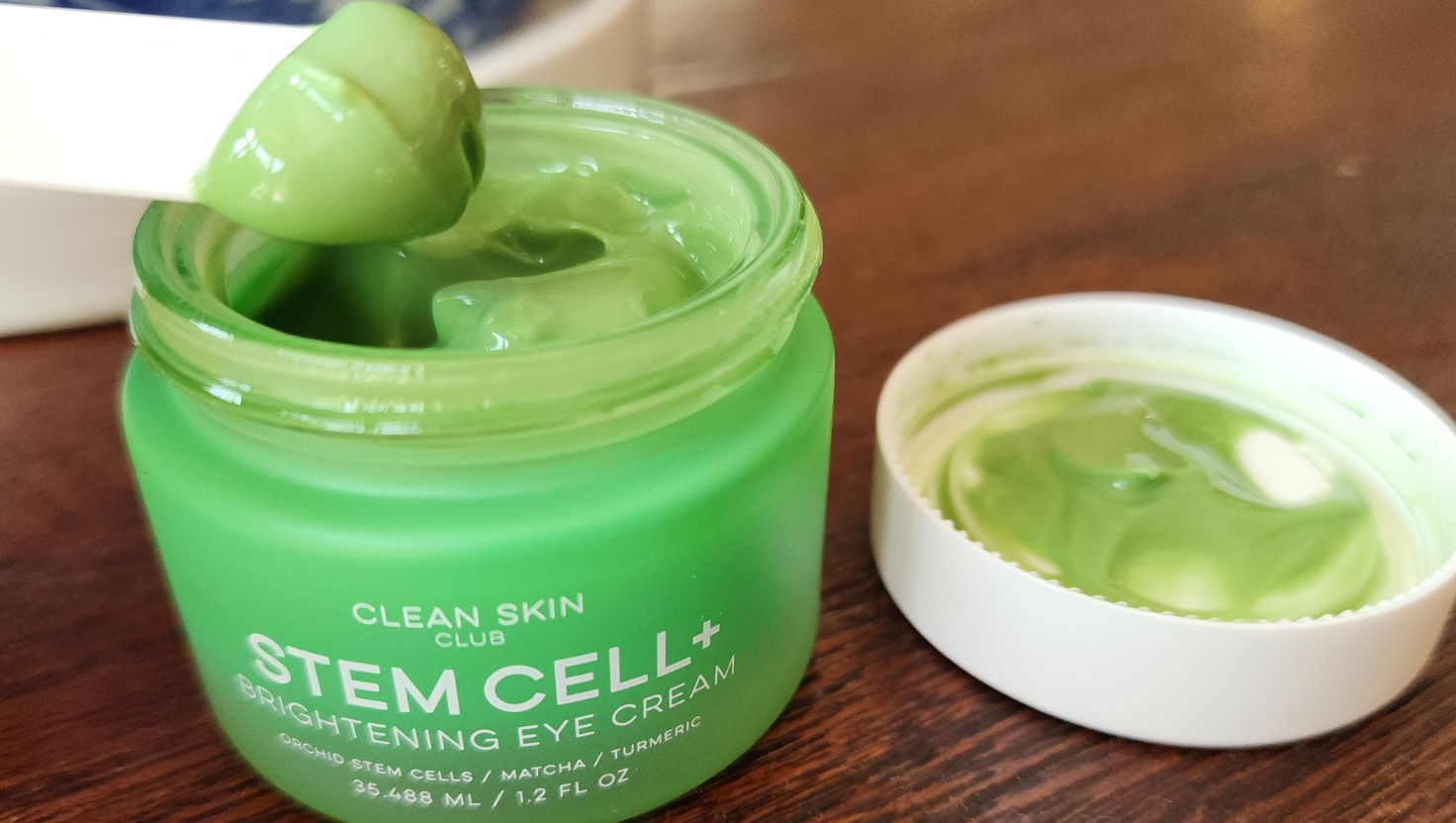 As a GenXer who neglected sunscreen for a large chunk of my life, I’m always on the lookout for a great eye cream. I was recently gifted the Stem Cell Brightening Eye Cream by Clean Skin Club to try. As someone who battles with dark, puffy eyes (from lack of sleep), I was intrigued by the promises on the eye cream box, but I’ll admit I was a little skeptical at first—especially when I scooped out some of the bright green eye cream with the included mini-paddle.