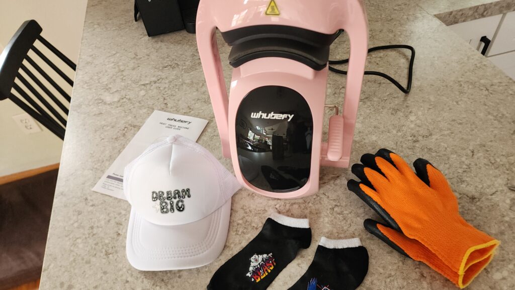 This machine isn’t just easy; it’s a whole lot of fun. The professional 3-in-1 design comes with three different heating plates (70mm, 80mm, and 90mm), so you can create custom designs on all sorts of hat shapes—from classic baseball caps to trendy snapbacks and visors. Whatever fits on the heating plate is fair game! I even cranked out a few fun pairs of socks while in test mode.