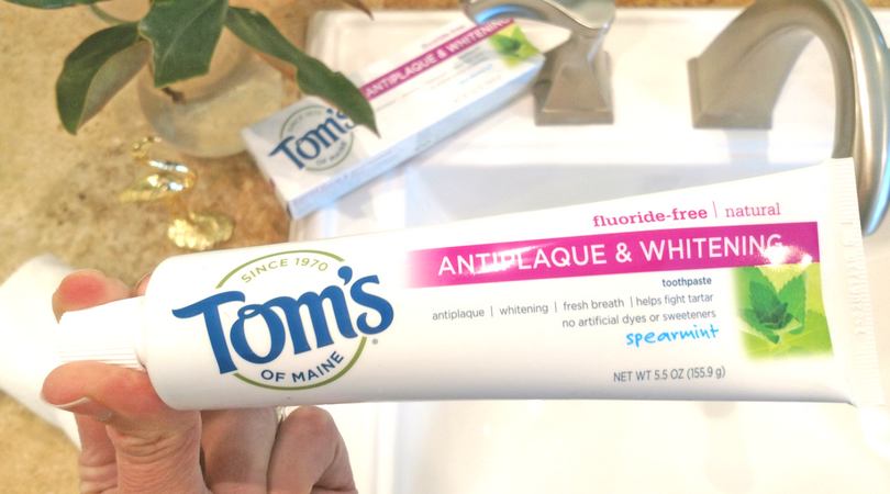 We brush our teeth with Tom’s of Maine® Antiplaque & Whitening formula. Not only is it effective and refreshing with the fresh taste of spearmint, but we love how Tom’s of Maine® is a good steward of the planet and strives to reduce waste through recycled content, recycling, and biodegradability.