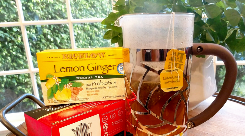 • Bigelow Tea Lemon Ginger Herbal Tea paired with lemon chunk cubes