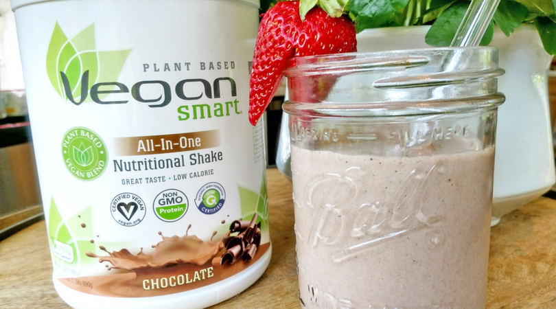 The chocolate banana smoothie is great as an afternoon snack, as it tastes like a decadent treat, but it’s healthy! 1/2 frozen banana, one scoop of Chocolate VeganSmart shake powder, 6 ounces of unsweetened Almond Milk. Blend and enjoy!