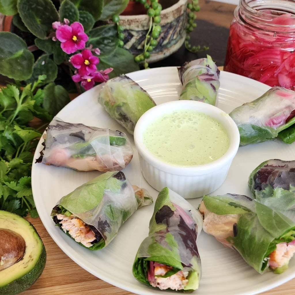 Forget the usual game-day chips and dip. These vibrant Salmon Summer Rolls are a fresh, satisfying, and impressive alternative that will have everyone asking for the recipe. Tender plank-grilled salmon is paired with tangy pickled red onions, fresh greens, and creamy avocado, all wrapped in delicate rice paper. A zesty cilantro dipping sauce ties it all together.