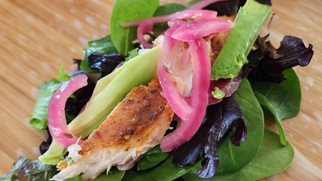 - Roll the Summer Rolls: Lay the softened rice paper flat on the damp towel. Place a small handful of salad greens in the center, followed by a few pieces of flaked salmon, a few slices of avocado, and a sprinkle of pickled red onions. Leave about an inch of space on the top and bottom of the wrapper.