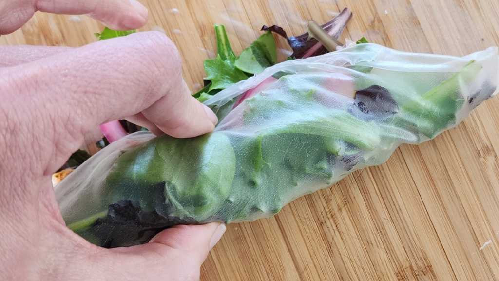 - Fold and Serve: Fold the bottom of the wrapper tightly over the filling. Next, fold in the sides, like a burrito. Finally, roll the wrapper tightly from the bottom to the top. The rice paper will be slightly sticky, helping to seal the roll.