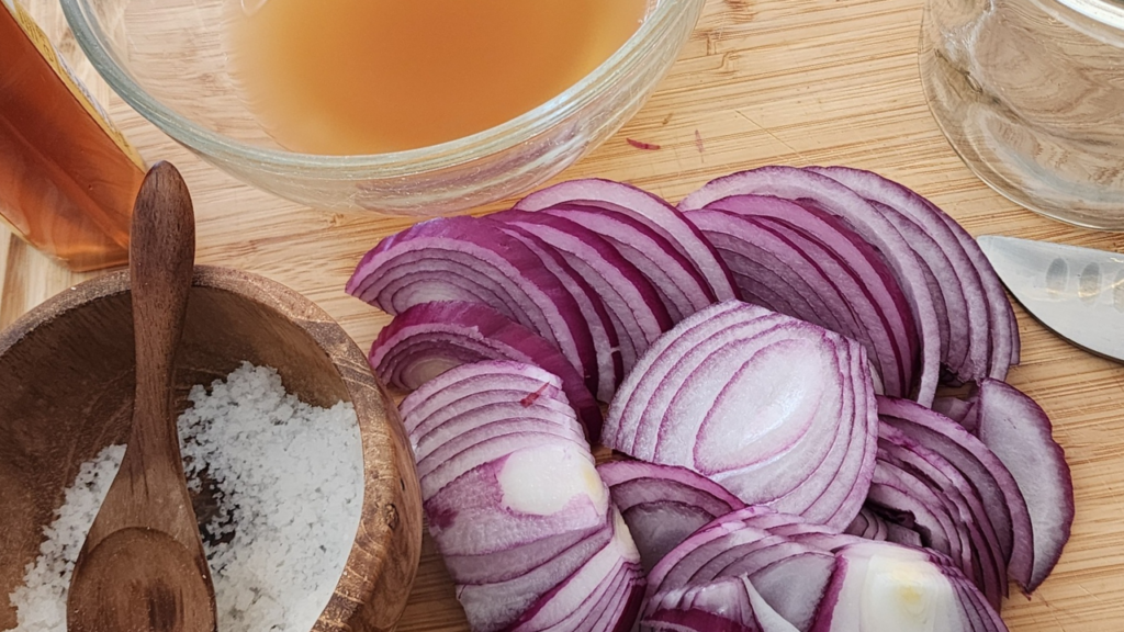 - Blanch Onions: Place sliced onions in a bowl. Pour boiling water over them and let stand for 1 minute. Drain thoroughly.