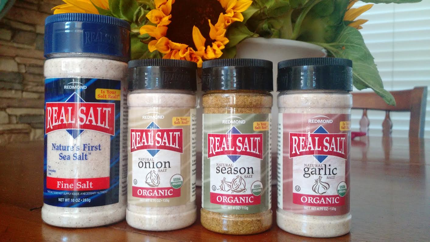 I contacted Redmond and they were so nice to send out some samples for me to try. I received the Nature’s Finest Sea Salt, Real Salt Organic Garlic Salt, Real Salt Organic Onion Salt and Real Salt Organic Seasoning Salt to test out. Let’s just say we’ve been cooking up a storm here and testing all of the varieties and it’s been a flavor blast!
