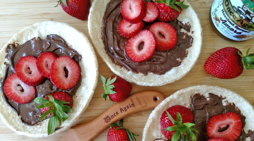 I’m always looking to make some fast snacks that are high in plant-based protein, and nut butter is an excellent choice. With strawberries starting to pop up in abundance with the warmer weather, now is a great time to pair Once Again Nut Butter Amoré Hazelnut Spread with fresh berries. Once Again produces a nut butter that is high in protein and fiber and has fewer calories and