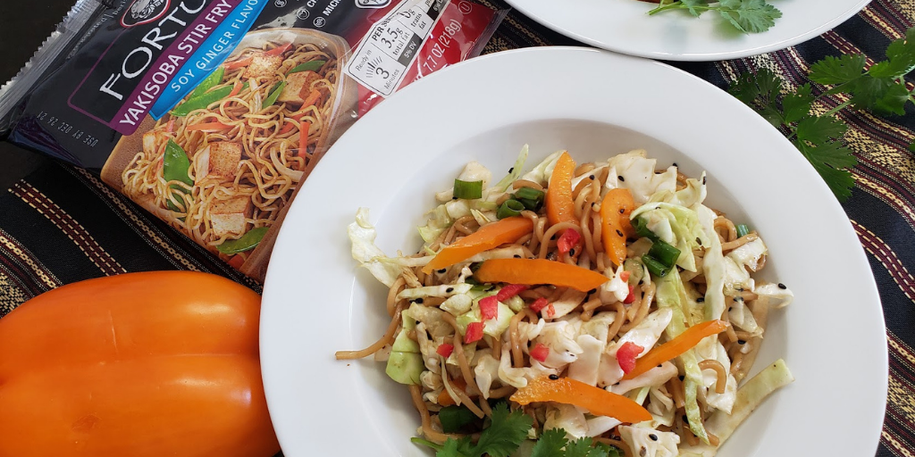 This stir fry noodle salad is easy, filling and super tasty! Using the Ginger Soy Yakisoba Stir-Fry Noodles, I created this delicious cabbage slaw salad that is healthy and very flavorful. The Yakisoba noodles come with a Ginger Soy spice packet, so all of the flavor is there to make a fast lunch of dinner. Here’s my Stir-Fry entry for the #fortunerecipechallenge.