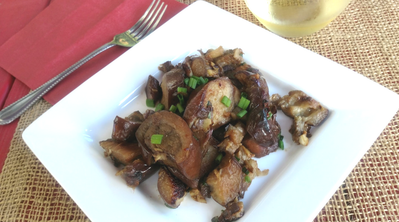Wash eggplants with hot water and slice into 1-inch1 inch rounds. Most recipes will have you put in a hot oiled pan, but I prefer to steam my eggplant a bit before the oil is added. This helps keep the oil amount down and makes the eggplant juicy.
