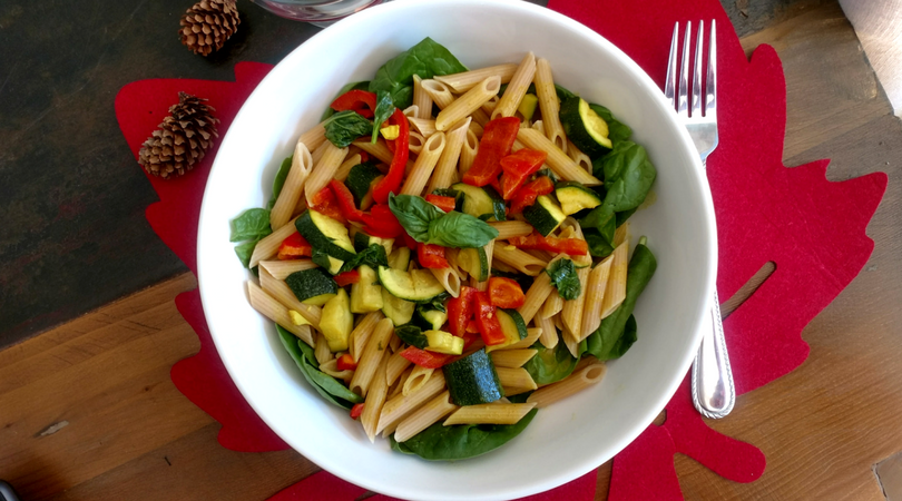 This Coconut Curry vegetarian pasta recipe is a departure from most traditional pasta dishes. The Indian spices and coconut milk make a light, yet flavorful, sauce infused pasta. It’s also served hot over a bed of fresh spinach, so the hot curry sauce wilts the greens under the pasta. It’s a great way to add extra vegetables to the dish, yet one less vegetable to ‘cook’!
