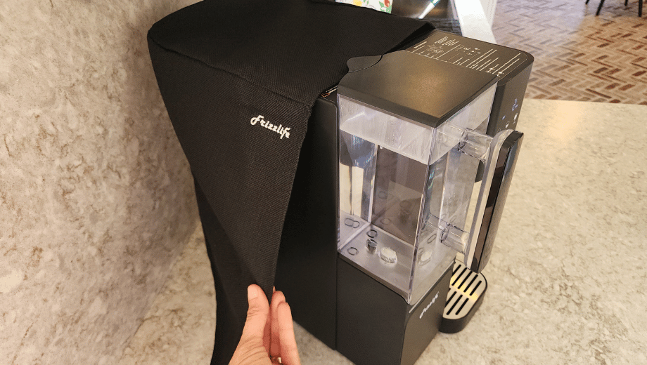 With the WB99, you’ll always know your water is at its peak quality. A built-in water quality indicator will glow red if the filtered water in the pitcher has been sitting for over 24 hours. I’ve not seen this feature in other countertop systems! This simple but brilliant feature is a gentle reminder to discard old water and let the system produce a fresh batch for you. It also comes with a black fabric fitted cover that looks like a stylish little RO jacket to block out any sunlight. My kitchen counter is sunny for part of the day, so I thought that was a genius bonus addition. Sunlight can contribute to algae growth, so I love that they thought of everything!