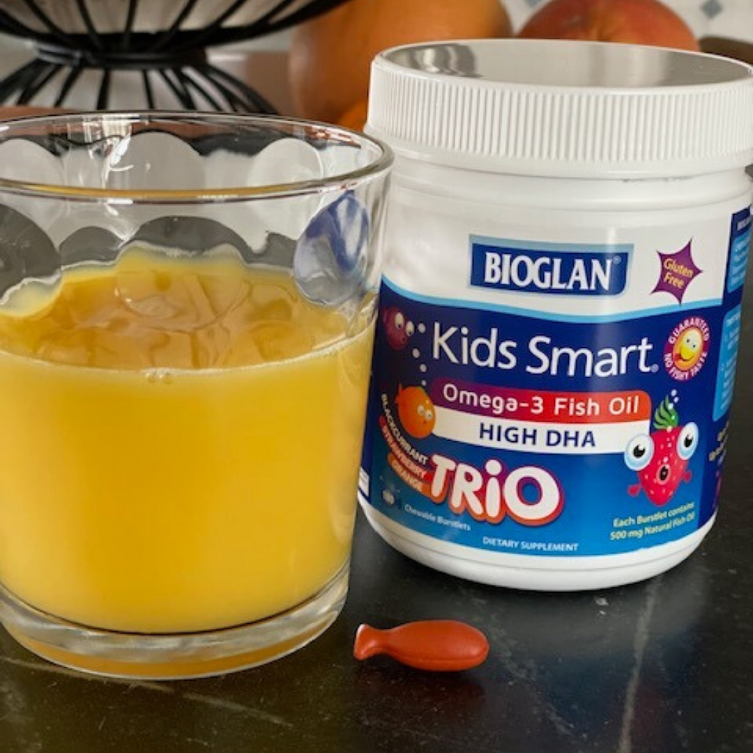 Well thanks to Kids Smart, taking the appropriate dose of their chewable fish shape Kids Smart High DHA Fish Oil Chewable Burstlets can assist in providing children with adequate levels of Omega-3 on a daily basis!