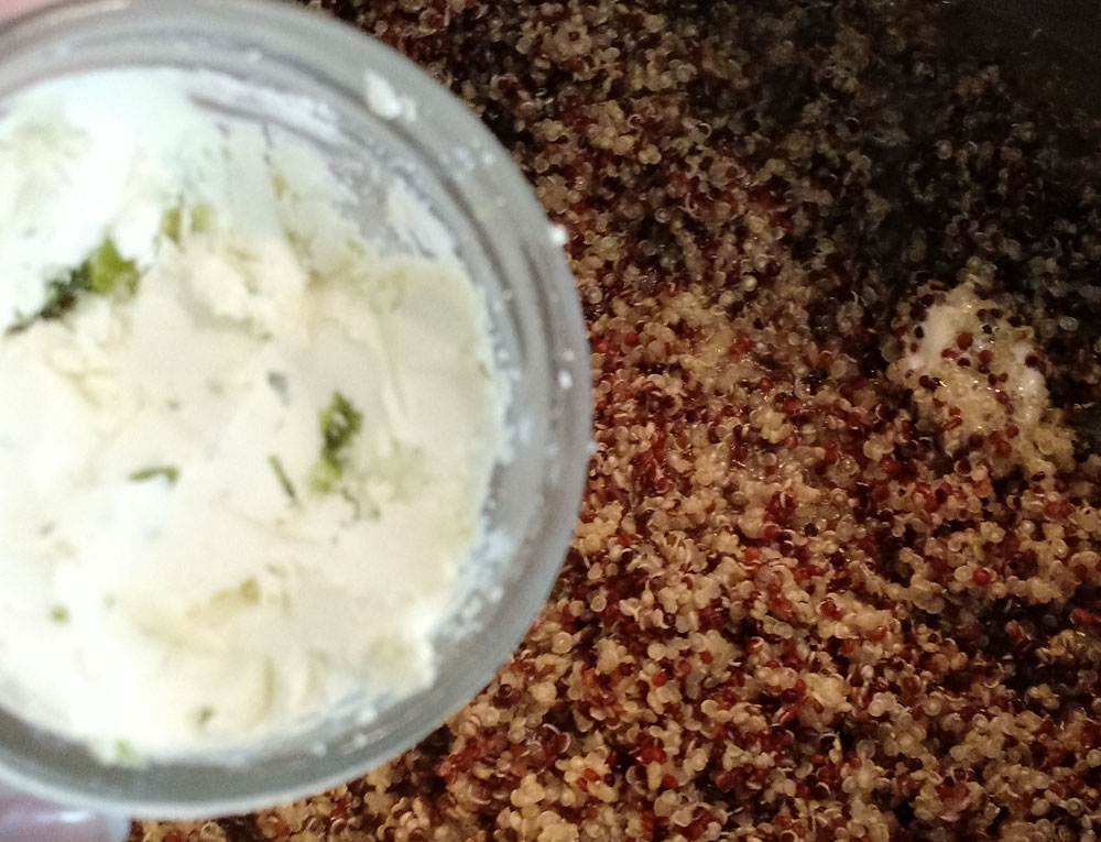 - Cook the entire bag per instructions. While the quinoa is cooking down, you may need to add additional water. As the quinoa starts to swell, add in a delcious herbal or spiced butter if you are so lucky enough to find some! I used a few healthy dollops of Charlie’s Jalapeno Smoked Sea Salt Butter. This is the perfect start to my Baja themed dish.