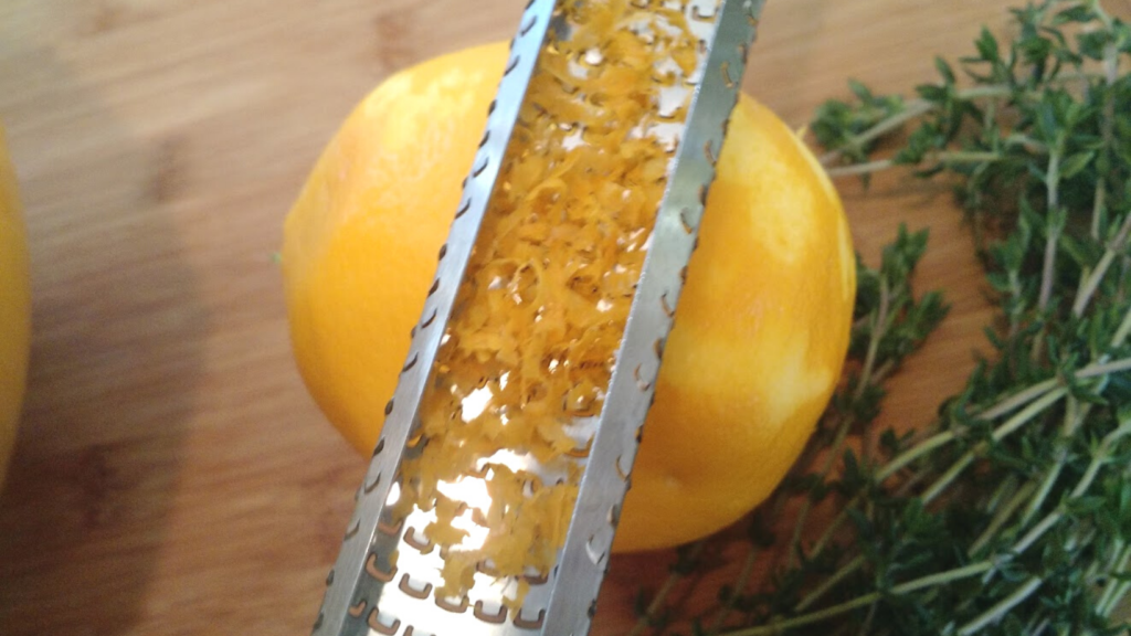 - 1 teaspoon grated lemon zest (from 2 lemons or one super huge lemon). Make sure to only zest the yellow part of the lemon & not the white, as the white is bitter!