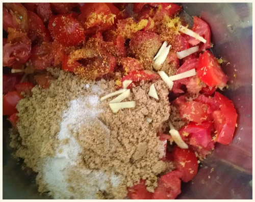 - Clean and core the tomatoes and chop them into 1-inch chunks. Place the tomatoes in a pot.